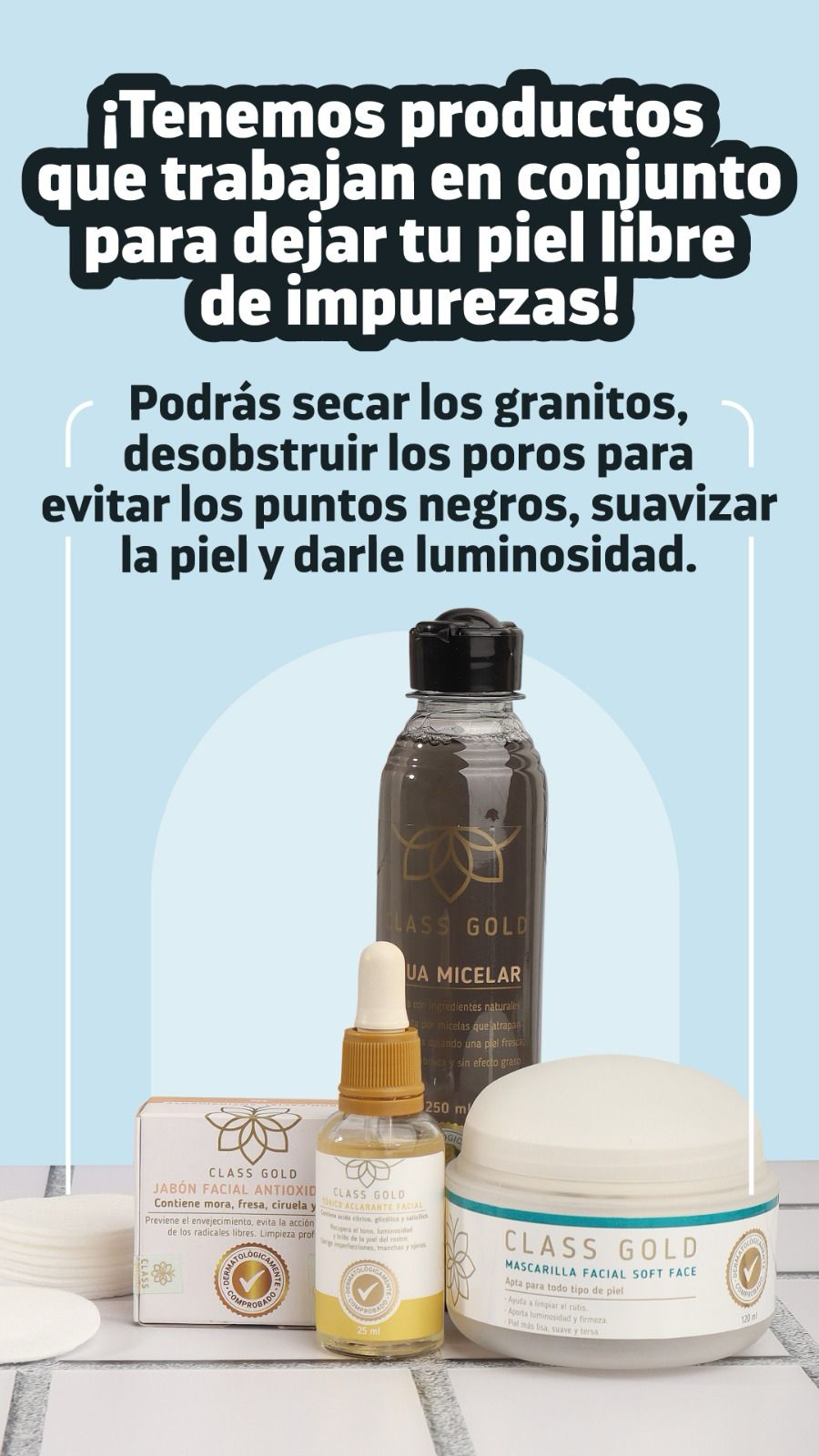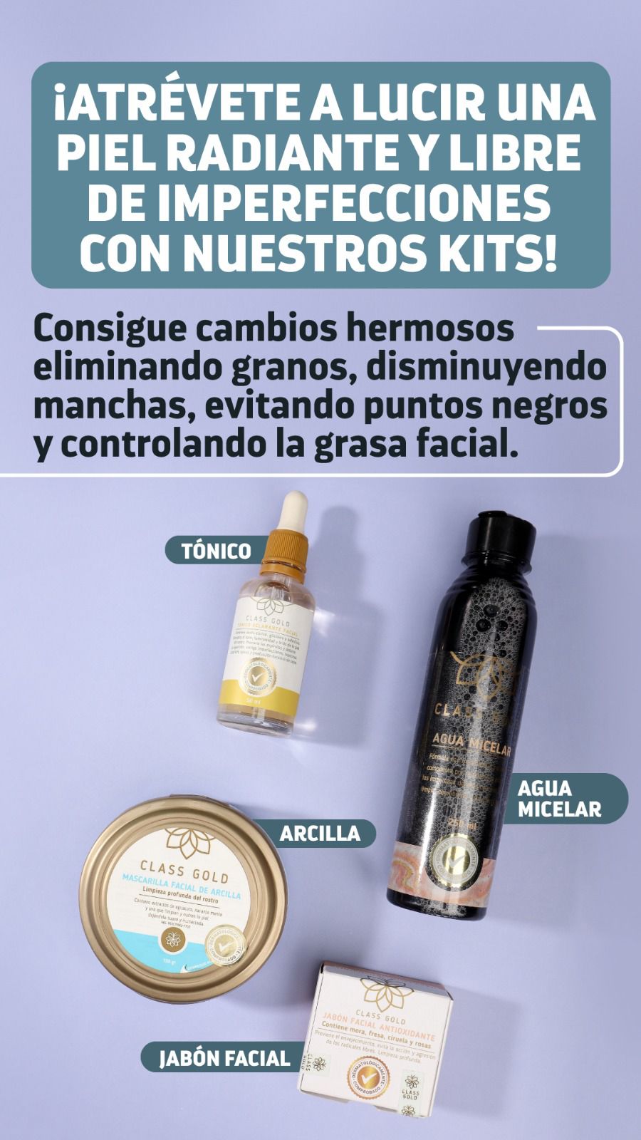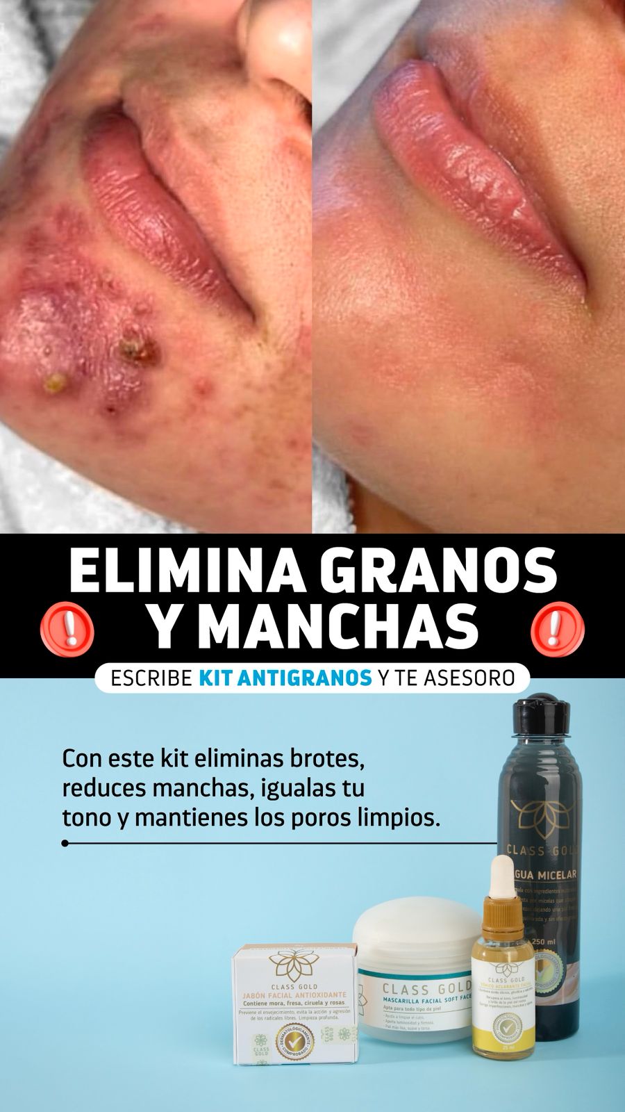 El Kit antigranos está formulado estratégicamente para tratar las obstrucciones de las glándulas sebáceas, controlando y eliminando el exceso de grasa. Además, combate la inflamación y las erupciones típicas de puntos negros, y ayuda eficazmente en el tratamiento de los granitos de acné, promoviendo una piel limpia, equilibrada y visiblemente saludable.
