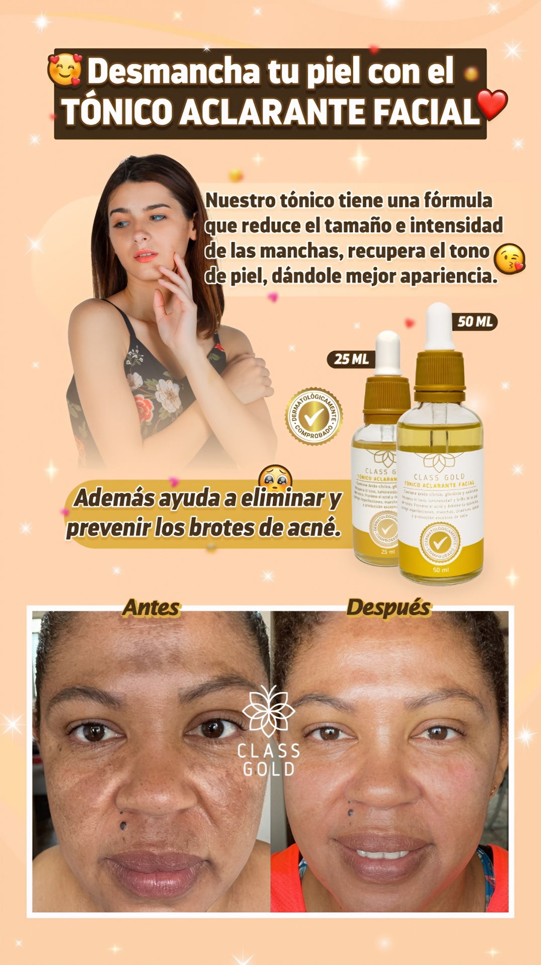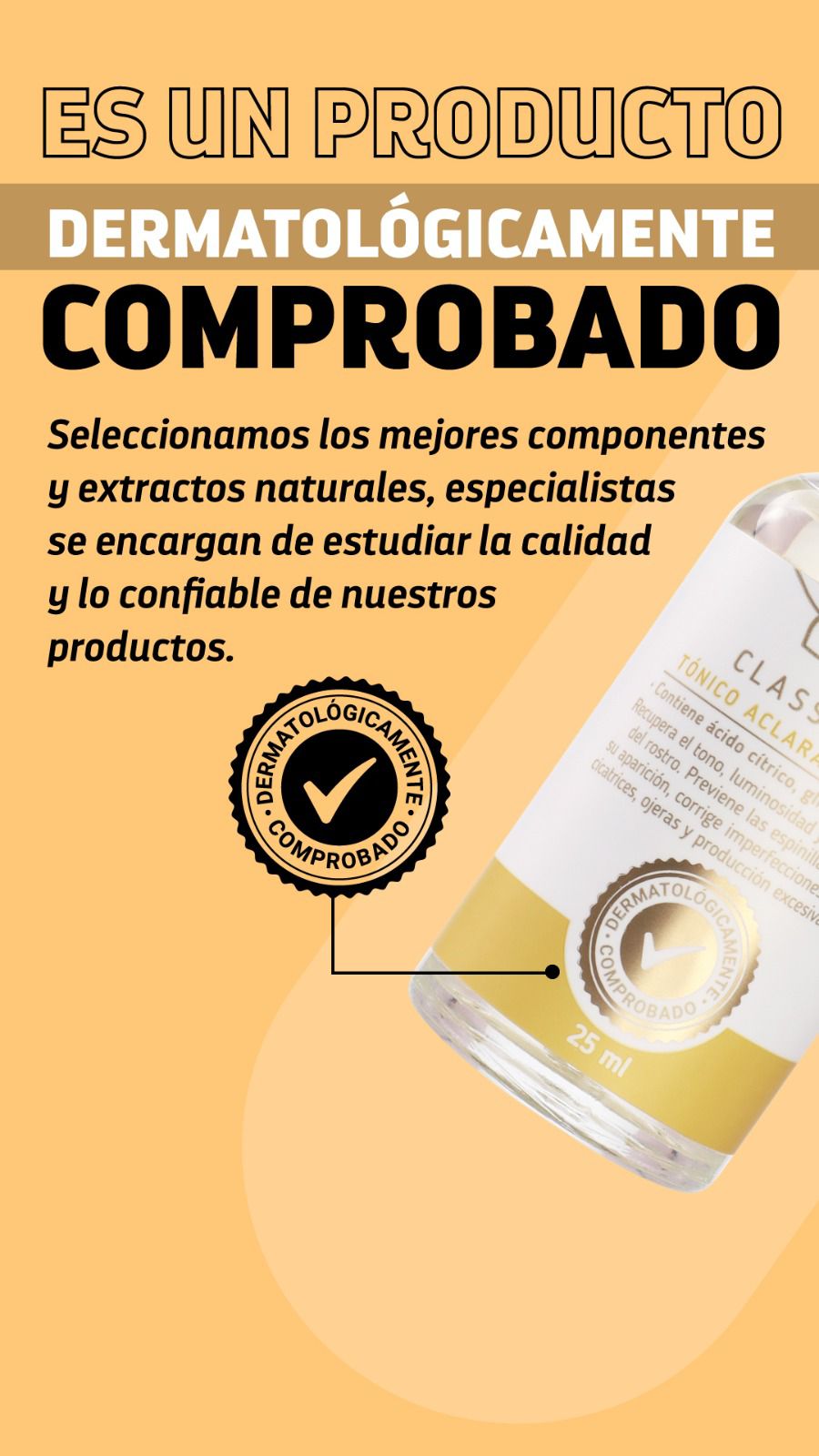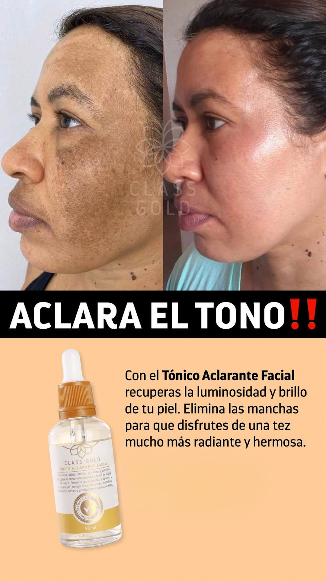 -TÓNICO ACLARANTE FACIAL: Aclara todo tipo de manchas y da uniformidad al rostro.