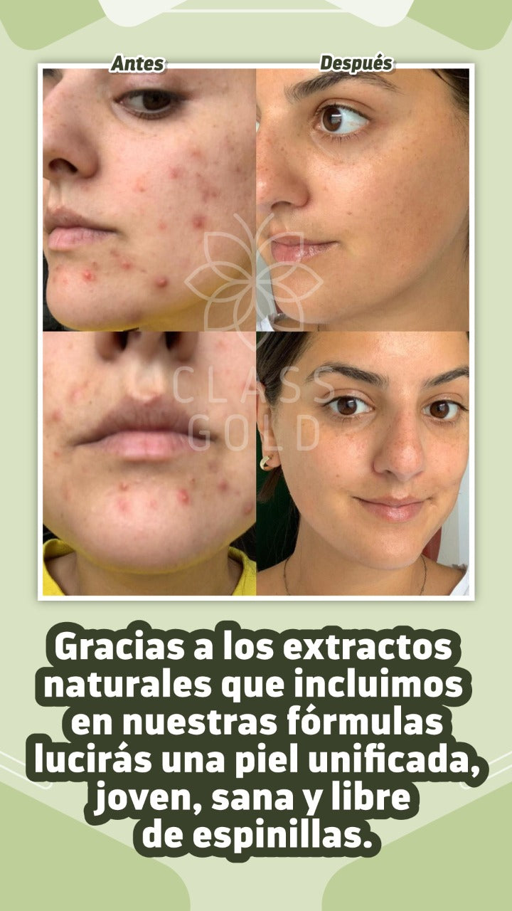 El Kit Completo Ultra Gold regenera profundamente la piel, promoviendo una renovación desde el interior para un cutis más joven y saludable. Su fórmula avanzada ayuda a reducir el acné, las arrugas y previene la aparición de brotes. Además, posee propiedades despigmentantes que atenúan manchas oscuras causadas por la edad o la exposición solar, unificando el tono y mejorando la luminosidad de la piel. Ideal para quienes buscan un cuidado integral y efectivo contra los signos del envejecimiento y los daños superficiales.