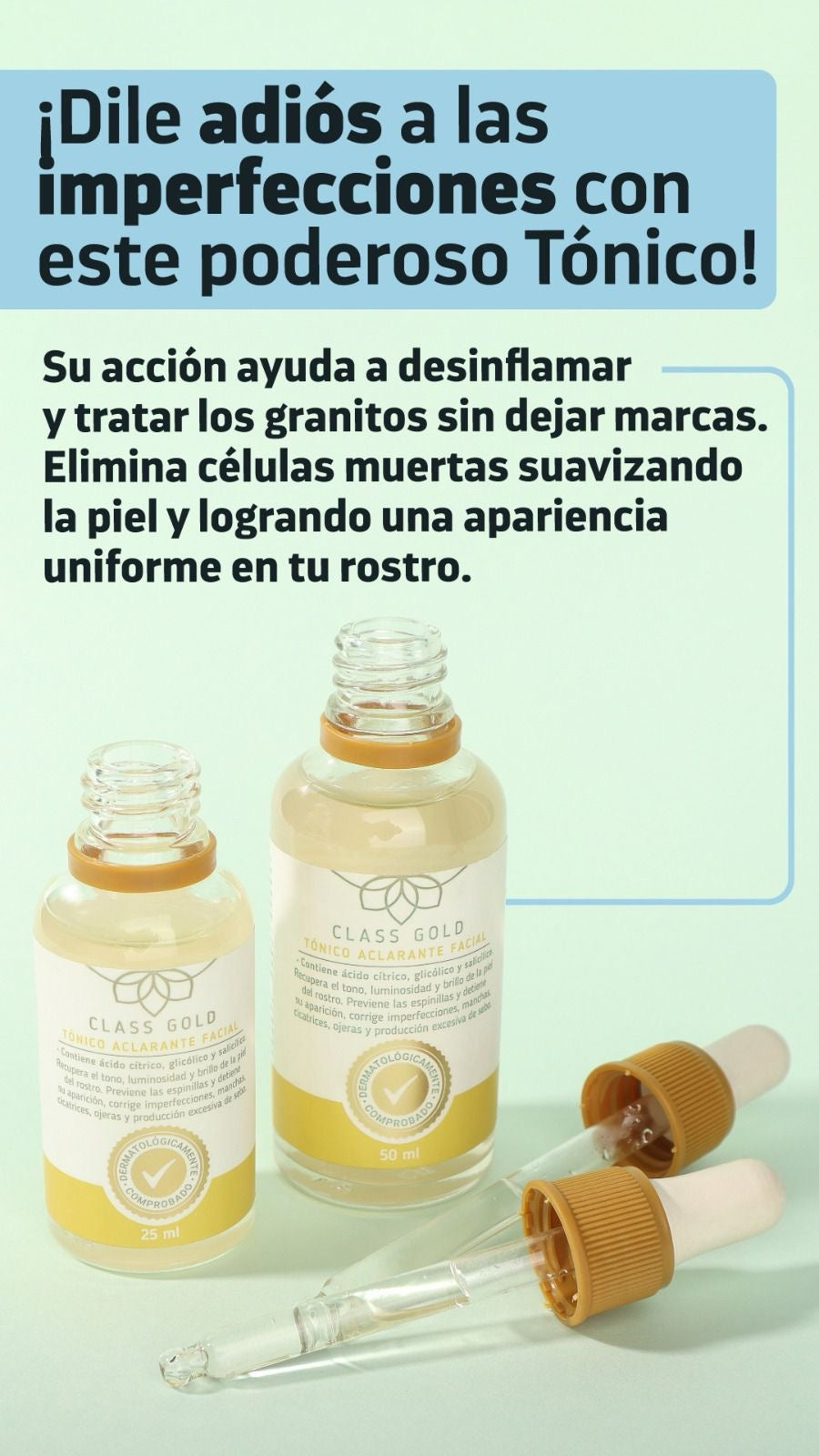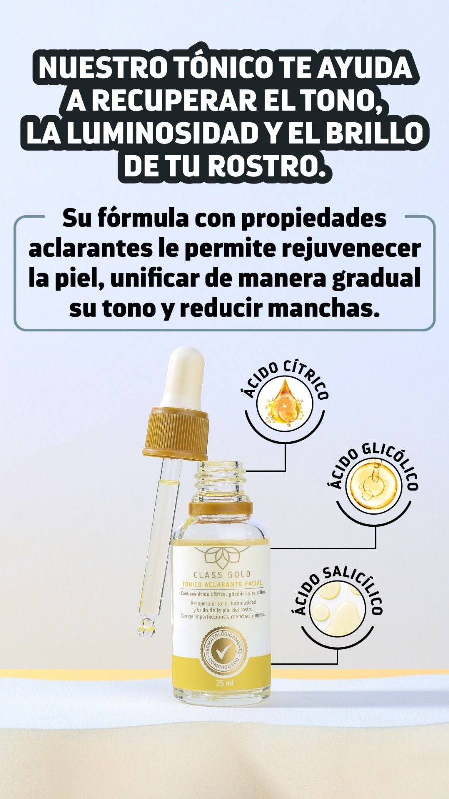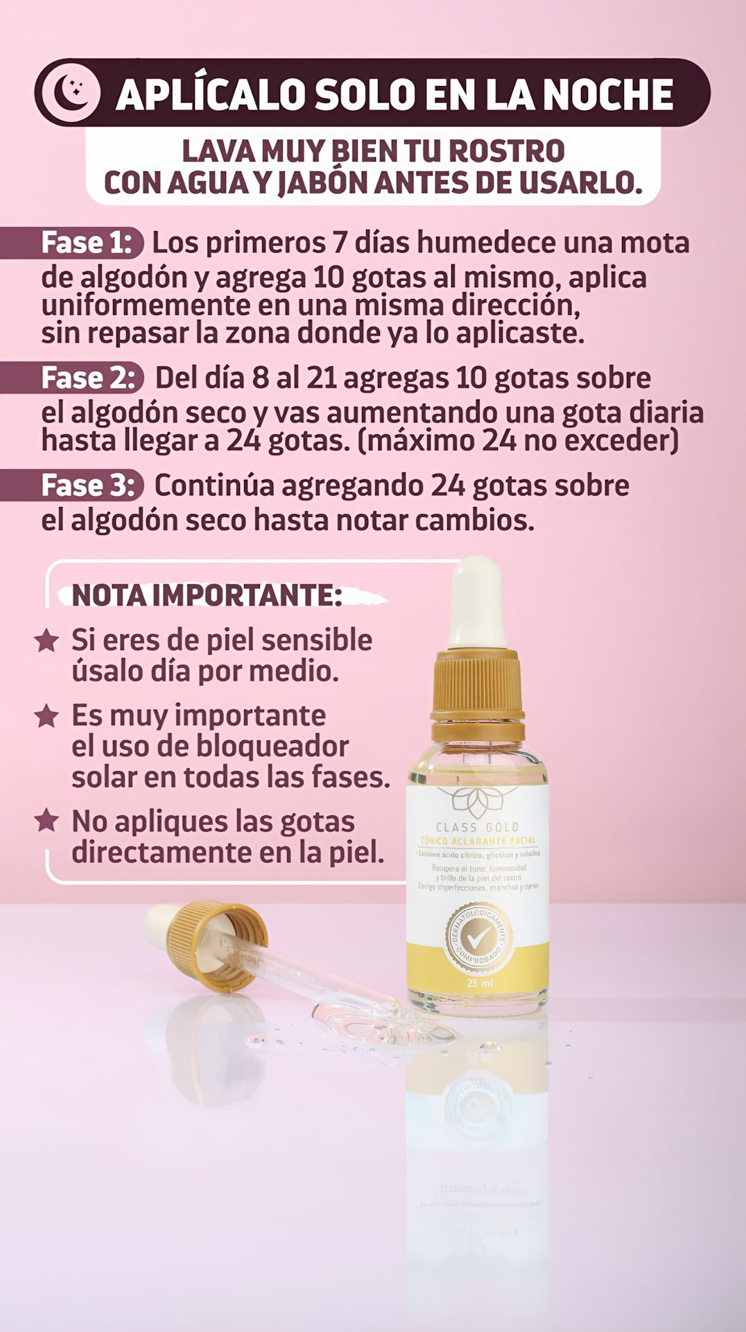 Contiene ácido cítrico, glicólico y salicílico. Recupera el tono, la luminosidad y el brillo de la piel. Detiene los granos y previene su aparición. Disminuye imperfecciones, manchas, cicatrices, ojeras y producción excesiva de sebo.