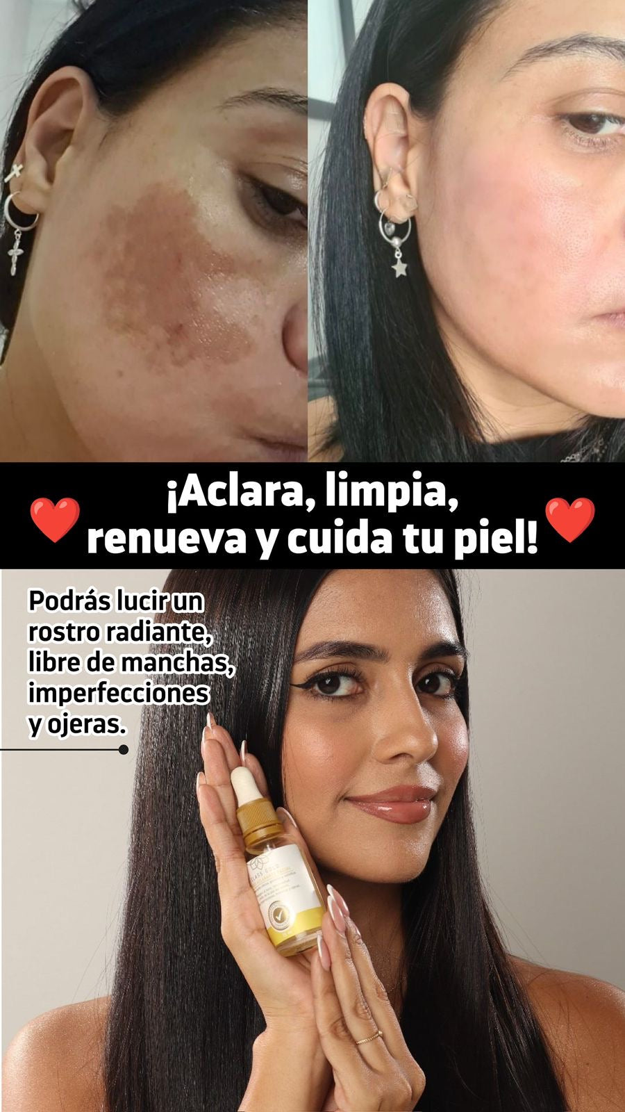 Gracias a sus componentes de origen natural podrás limpiar, desmanchar y renovar tu piel. Excelentes resultados en muy poco tiempo, atrévete a lucir una piel hermosa y decirle adiós a esos detallitos. Ayuda significativamente a reducir pigmentaciones, manchas de sol, hormonales o por la edad.